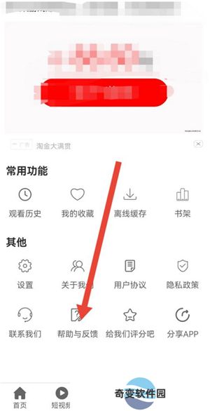 第三步:来到我的主页,点击【帮助与反馈】。