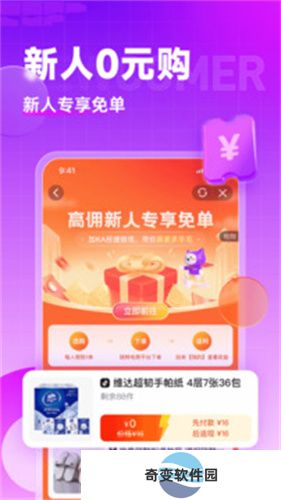 2、新人专享首单0元购,每日更新免单商品,让购物更惊喜。