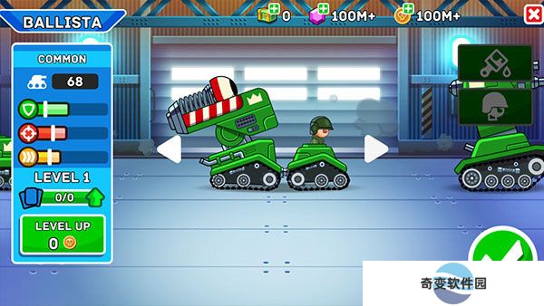 升级坦克:使用在战斗中获得的金币升级你的坦克,提高它的装甲、火力和速度,打造无敌战车。