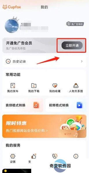 1、进入茶杯狐app选中“我的”,点击【立即开通】。