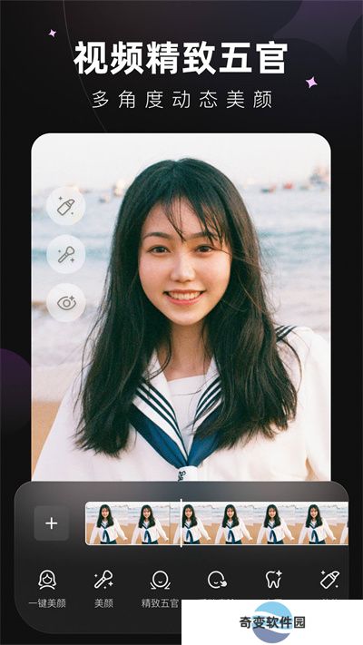 视频人像美颜神器,让你的视频每一帧每一秒都绝美如画,传承美图秀秀美颜基因,像p照片一样p视频,高清视频人像精修,智能祛皱美白,打造精致上镜脸。