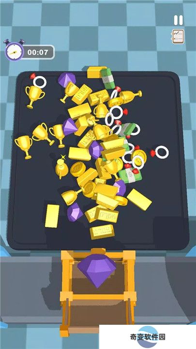 通过简单的点击,将相同的物品进行分类整理,直至所有物品都归位,清理整个面板。