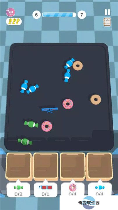 点击屏幕上的物品,将它们分类整理到相应的位置。确保每一类物品都整齐排列,才能清除面板上的所有项目。