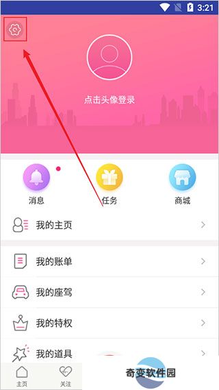 2、在“我的”页面,点击左上角“小齿轮”图标按钮。