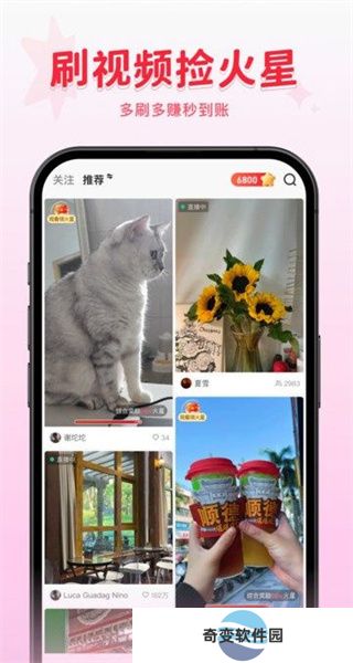 看视频就能捡火星,积攒火星兑换现金,现金满100可取;发布优质内容,即可获得平台奖励,单条最高奖励10万元。