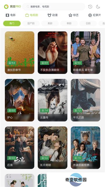 2、选择搜索框下方的电视剧栏目,可以筛选热门、国产剧、韩剧、美剧等。