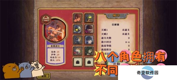 多样角色:八个角色各自拥有独特的天赋技能,玩家可根据自己的喜好和策略进行选择。