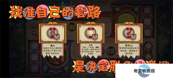 7. 选择强度+14的装备,因为怪物攻击非常强悍,我选择了白色面具:每6点护甲抽一张牌。暴击和怒火都用不上,因为套路成型后不需要它们也能快速秒杀敌人。