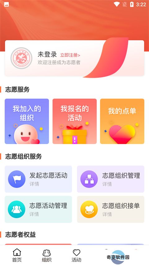 2、通过本软件,您可以实时在线报名、查询志愿者活动信息以及报名状态。