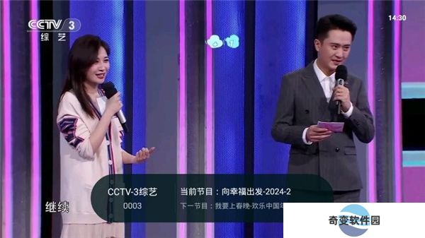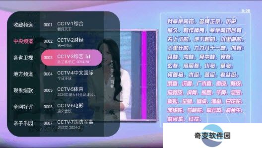 2.打开后软件自动播放,默认是央视频道,点左侧选择频道;