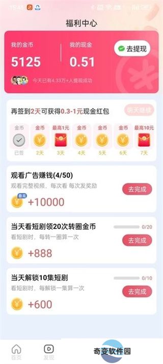 4、围绕短剧观看和赚钱展开各项功能,满足大家即刻追看的方便。
