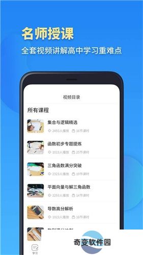 高考数学是一款专为高三朋友们打造的学习培训高中数学专业知识的软件。它提供了多种不同的数学题型,巩固知识并进行复习。课程内容由专业教师讲解,学习更加方便,快速掌握所有的数学知识点,提升数学水平。