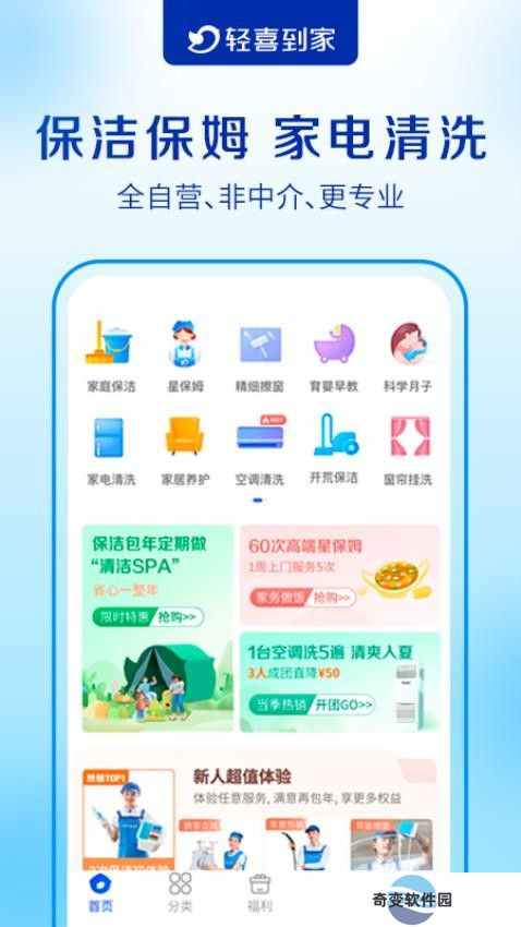 轻喜到家APP里面提供的多样生活服务,为用户的生活提供了很多的便利。尤其是里面的家电清洗、保洁以及保姆等各种服务更是很多懒人用户的福音,不用面对家中的繁琐家务,让你的生活幸福感获得提升。
