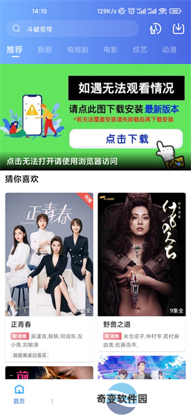 1、在本页面下载安装行星视频后,打开APP,在首页可以看到推荐和猜你喜欢的电视剧,将当下正在热播的剧推荐给用户;