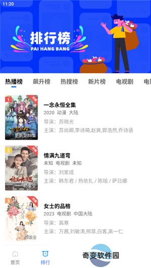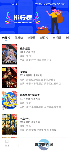 2、通过排行列表可以看到热播榜单、飙升榜、热搜榜、新片榜、电视剧、电影等分类,查看当前正在热门的电视;