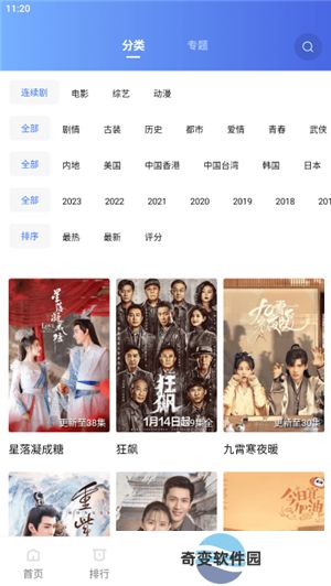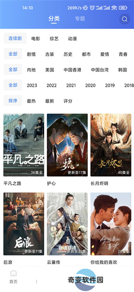 3、通过分类频道可以根据类型、题材、地方、年份、最新、最热、评分等方式筛选出不同的剧作;