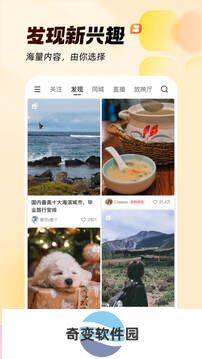 快手app亮点1、推荐当下最热门的话题和最火的视频,以供用户浏览。