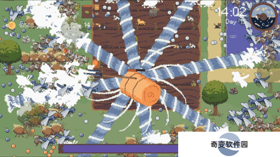 你作为农场守护者,农场中的干草垛,收割机,耙子,镰刀,都是你趁手的武器,快拿起它们收割前来进犯的害虫们,利用灵活的身法有条不紊的在海量的敌人围攻中杀出重围,尽享战场中的紧张刺激的战斗快感!